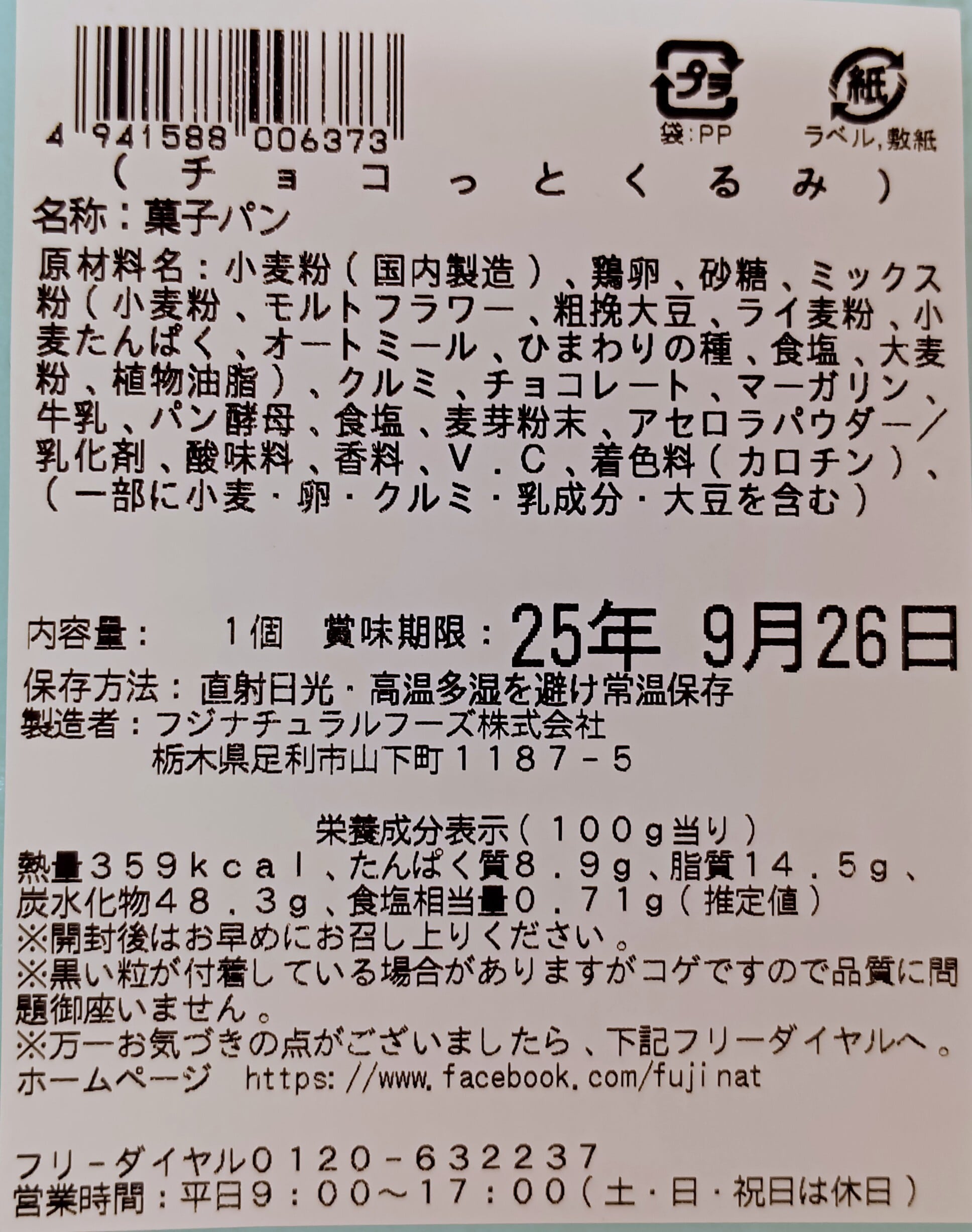 小麦粉(国内製造)、鶏卵、砂糖、ミックス粉(小麦粉、モルトフラワー、粗挽大豆、ライ麦粉、小麦たんぱく、オートミール、ひまわりの種、食塩、大麦粉、植物油脂)、クルミ、チョコレート、マーガリン、牛乳、パン酵母、食塩、麦芽粉末、アセロラパウダー/乳化剤、酸味料、香料、V.C、着色料(カロチン)、(一部に小麦・卵・クルミ・乳成分・大豆を含む)