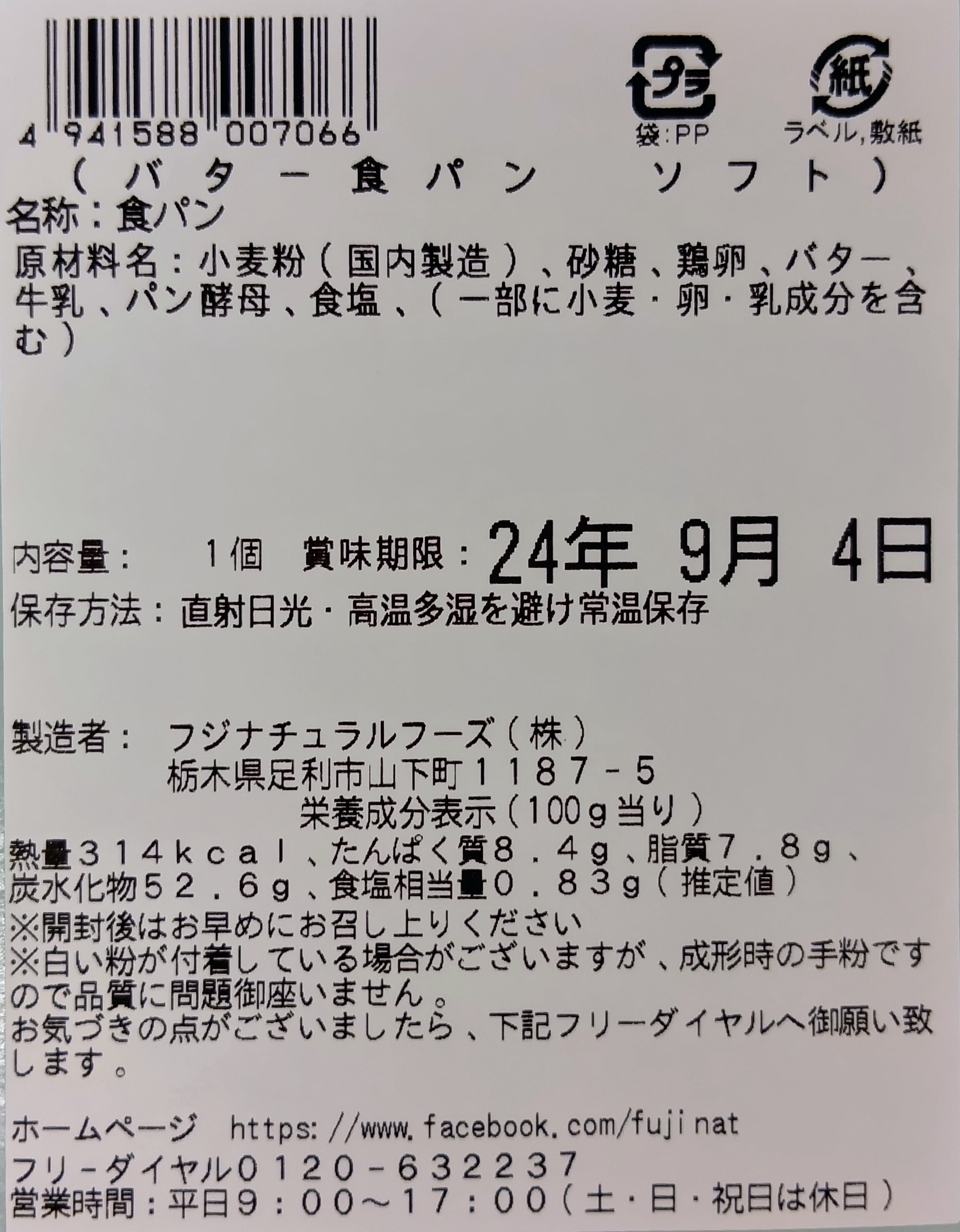 小麦粉(国内製造)、砂糖、鶏卵、バター、牛乳、パン酵母、食塩、(一部に小麦・卵・乳成分を含む)